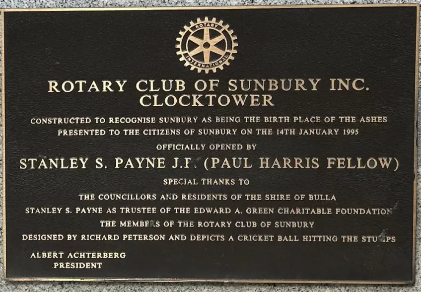 A street sign and a clock tower in Evans St are two permanent reminders that Sunbury is the home of The Ashes.